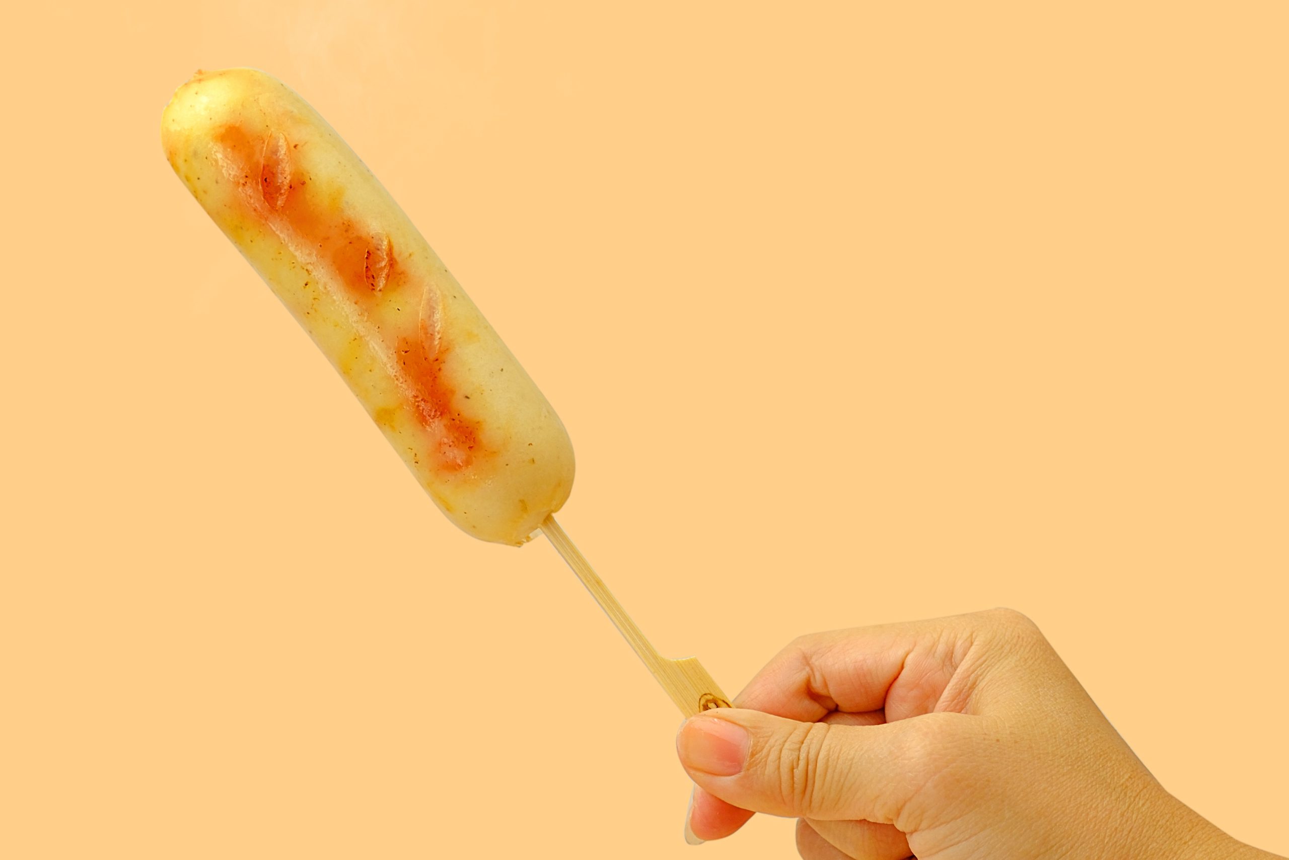 ไส้กรอกOMG ตราแม่ไก่ เสียบไม้ละ 1 ลูก จำนวน 10 ไม้ น้ำหนัก 900 กรัม/แพ็ค